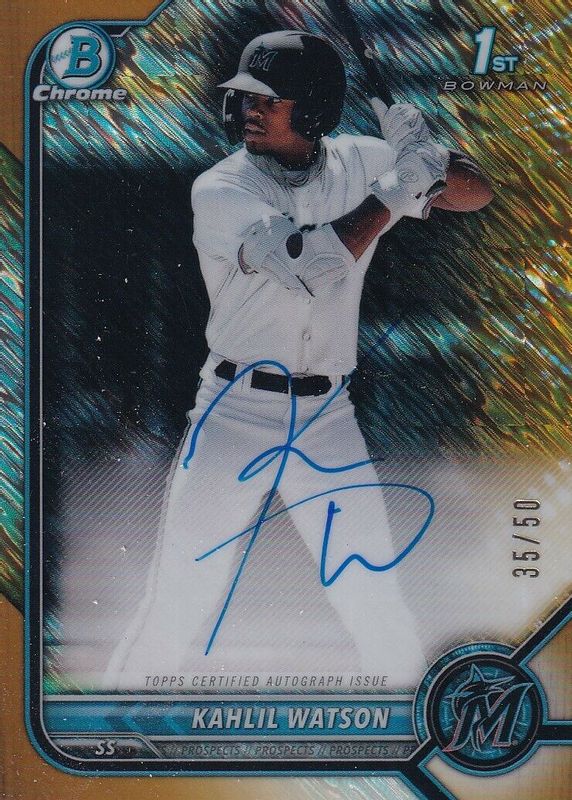 2022 Bowman Chrome Kahlil Watson Gold Shimmer Refractor Auto #33/50 Marlins M295