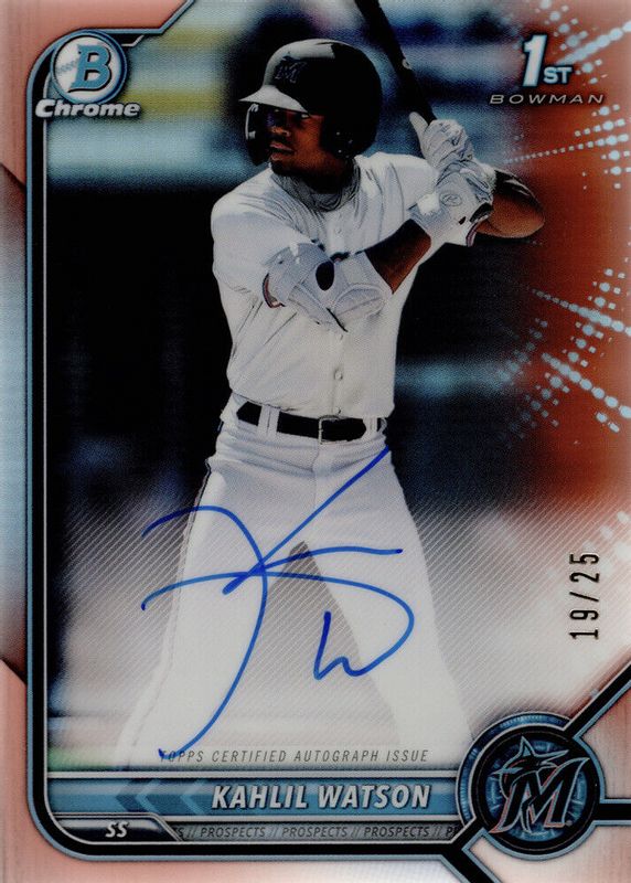 Auctions Ending Soon for Kahlil Watson 2022 Bowman #CPA-KW Chrome Prospect Auto - Orange Refractor /25 (1st) RAW