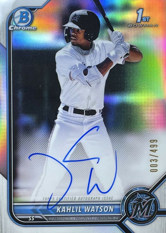 KAHLIL WATSON AUTO 1st 2022 Bowman Chrome Prospects Autograph REFRACTOR #/499 RC