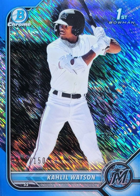 2022 BOWMAN CHROME Kahlil Watson BLUE SHIMMER REFRACTOR #116/150 Marlins!