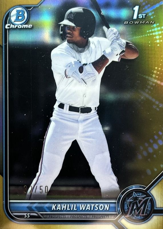 KAHLIL WATSON 2022 BOWMAN CHROME #BCP-3 MARLINS ROOKIE GOLD REFRACTOR #/50 S9730
