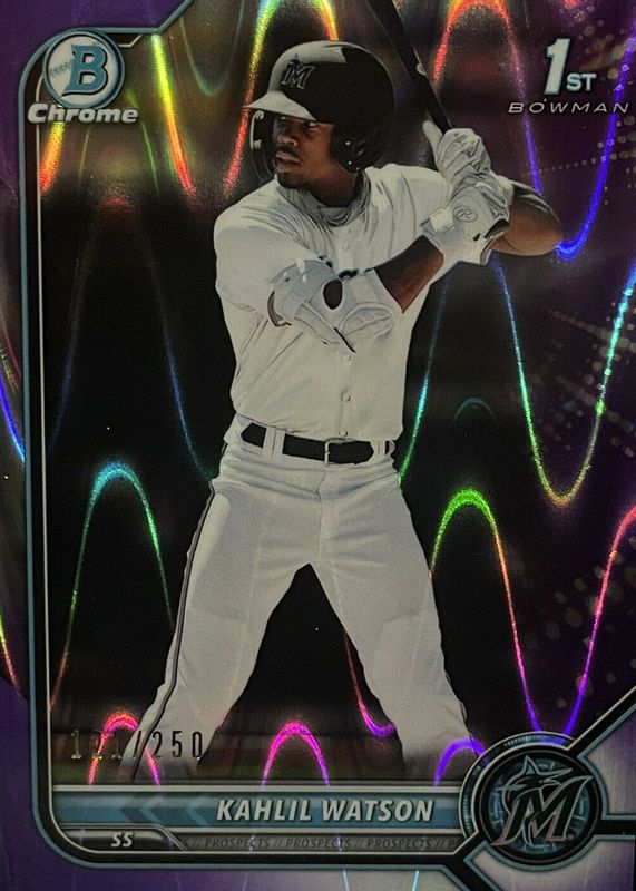 2022 Bowman Chrome Kahlil Watson Purple RayWave Refractor /250 #BCP3 1st Marlins