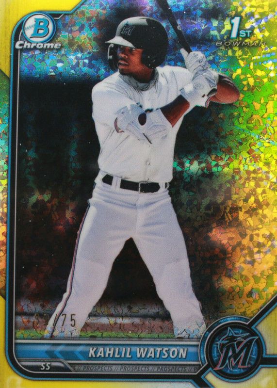 Auctions Ending Soon for Kahlil Watson 2022 Bowman #BCP-3 Chrome Prospects - Yellow Mini-Diamond Refractor /75 (1st) RAW