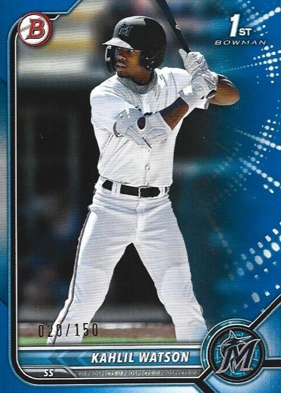 2022 Bowman Prospect Blue Parallel Kahlil Watson #092/150 (BP-3) Marlins