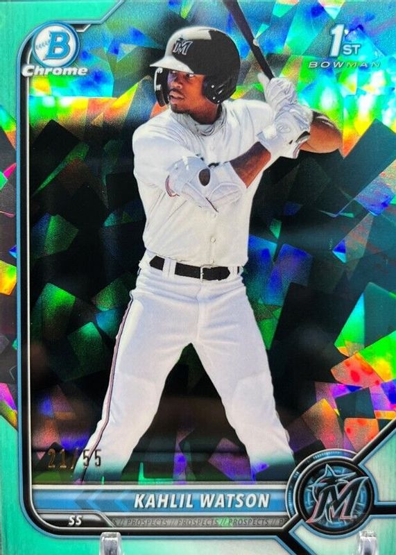 Kahlil Watson 2022 Bowman Sapphire Baseball Aqua #29/55 1st Bowman Marlins