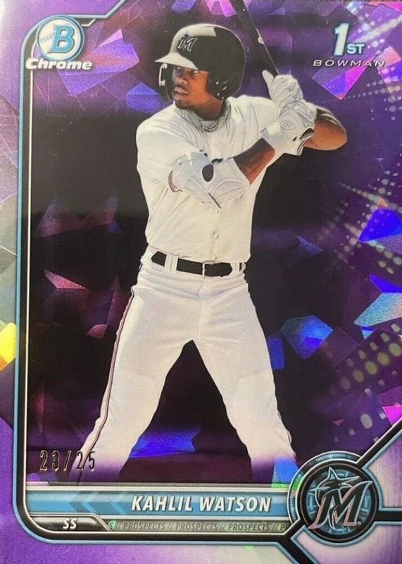 KAHLIL WATSON 2022 Bowman Sapphire 1ST BOWMAN PURPLE REFRACTOR /25 BCP-3 Marlins
