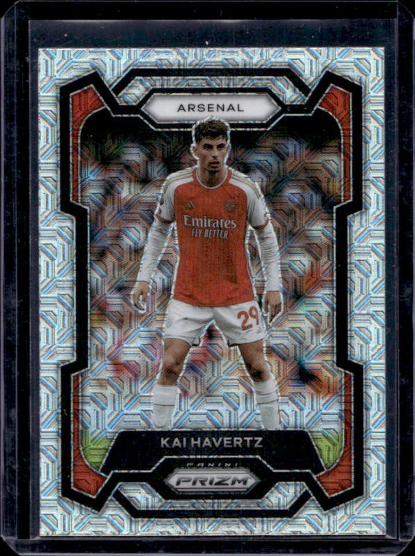The Kai Havertz 2023 Prizm Premier League #24 Mojo card is 1 of 63 Kai Havertz's card variations in the 2023 Prizm Premier League set being tracked by Sports Card Investor, including Base, Blue Mosaic, Breakaway, Breakaway Orange, and Choice.