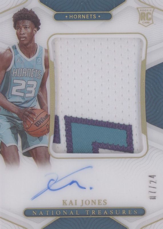 This card is 1 of 10 Kai Jones' card variations in the 2021 National Treasures set being tracked by Sports Card Investor, including Rookie Patch Auto - Bronze (/49), Rookie Patch Auto - NBA 75th (/75), Rookie Patch Auto - Pink (/25), Rookie Patch Auto /99, and Rookie Patch Auto - Gold /10.