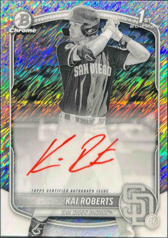 Kai Roberts 2025 Bowman Chrome #CPA-KR Prospect Auto - Black & White Shimmer Refractor (1st) RAW Price Guide