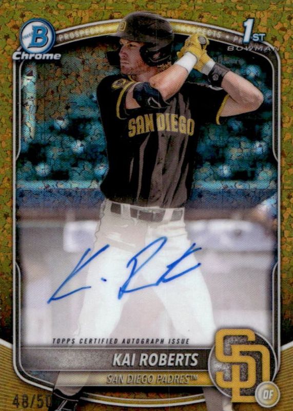 2025 BOWMAN CHROME KAI ROBERTS 1ST GOLD MINI DIAMOND AUTO 08/50 CPA-KR PADRES