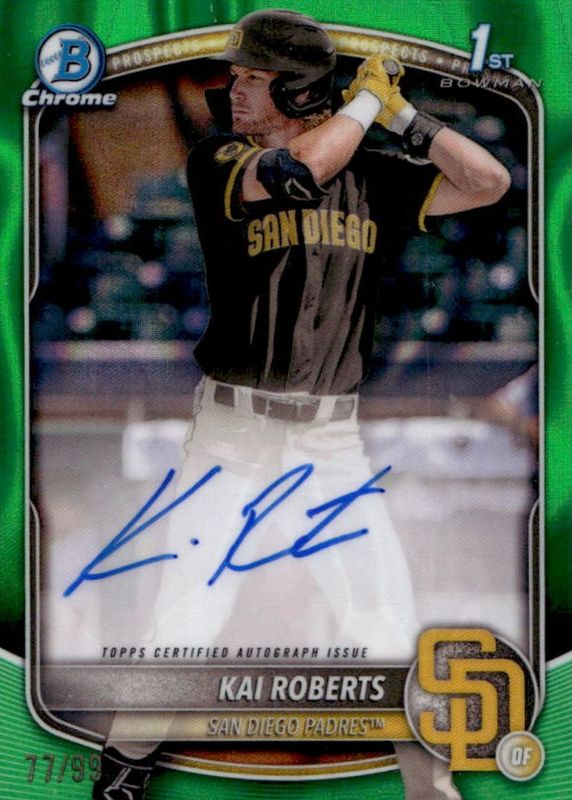 2025 Bowman Draft Chrome Kai Roberts 1st Prospects Auto Green Lava 34/99 Padres