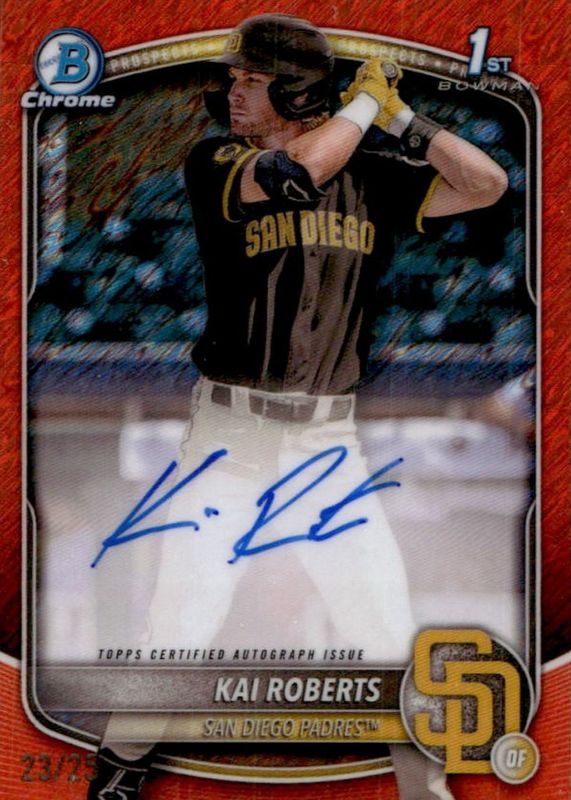 Kai Roberts 2025 Bowman Chrome #CPA-KR Prospect Auto - Orange Shimmer Refractor /25 (1st) RAW Price Guide