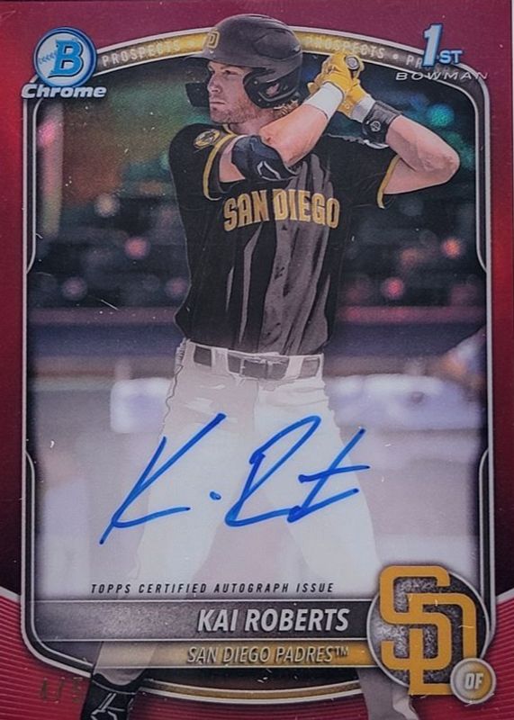 Kai Roberts 2025 Bowman Chrome #CPA-KR Prospect Auto - Red Refractor /5 (1st) RAW Price Guide