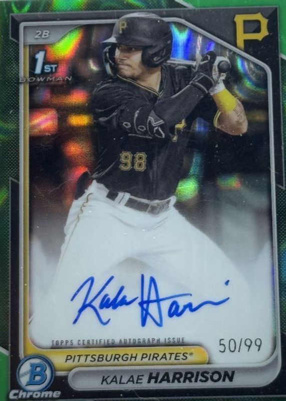 2024 Bowman Chrome Kalae Harrison 1st Bowman Green Lava Auto /99 RC – Pirates 🏴