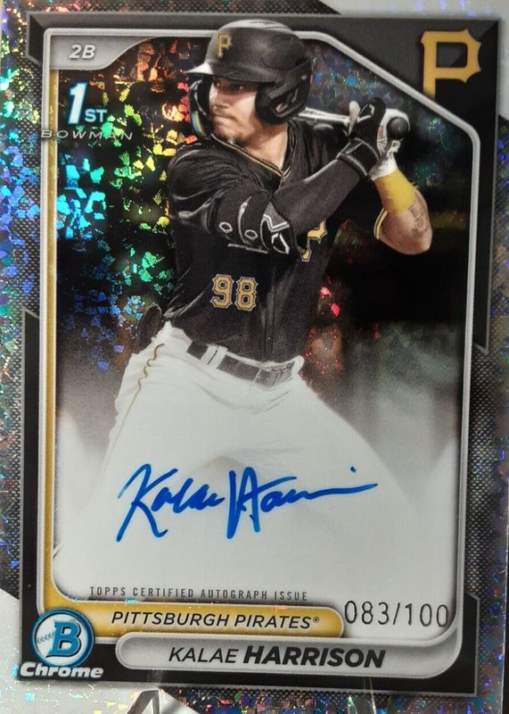 The Kalae Harrison 2024 Bowman Chrome #CPA-KH Prospect Auto - Mini-Diamond Refractor /100 (1st) card in Raw condition has not changed in price in the last 30 days and was last sold for $6.99 .