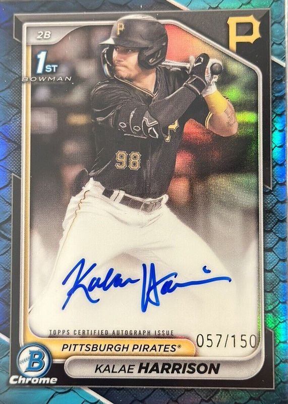 2024 Bowman Chrome Kalae Harrison 1st Bowman Reptillian Blue Auto /150 Pirates