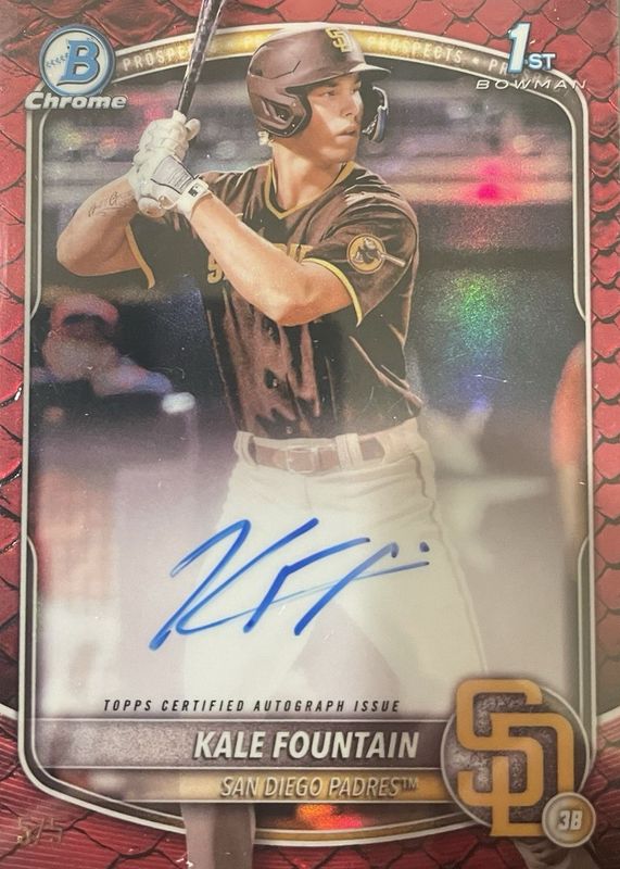 Kale Fountain 2025 Bowman Chrome #CPA-KFO Prospect Auto - Reptilian Red Refractor /5 (1st) RAW Price Guide