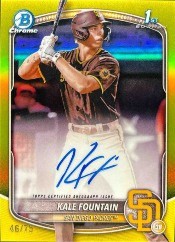 2025 BOWMAN CHROME YELLOW REFRACTOR /75 RC AUTO KALE FOUNTAIN PADRES CPA-KFO