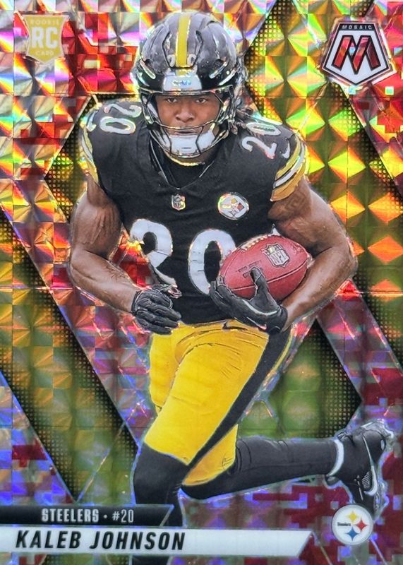 2025 Panini Mosaic - Kaleb Johnson (RC) #315- Red Camo Mosaic - Steelers Rookie
