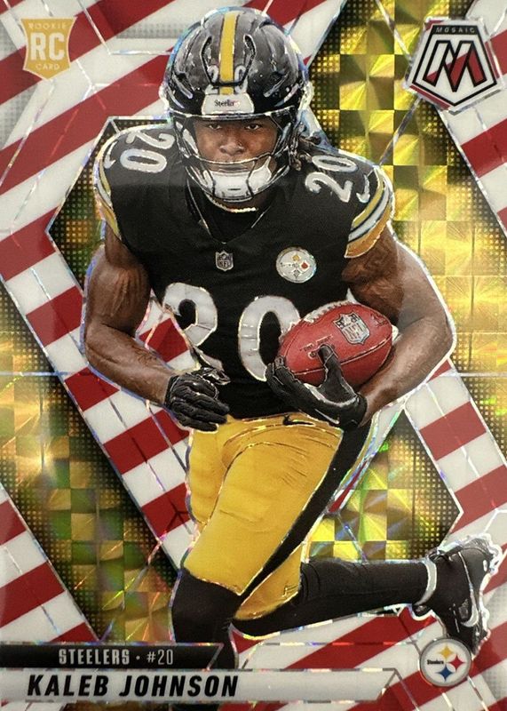 2025 Panini Mosaic Kaleb Johnson Mosaic Red and White Stripe Steelers 315