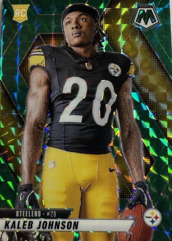 2025 Mosaic Kaleb Johnson Rookie Variation Green Mosaic Prizm RC #289 Steelers