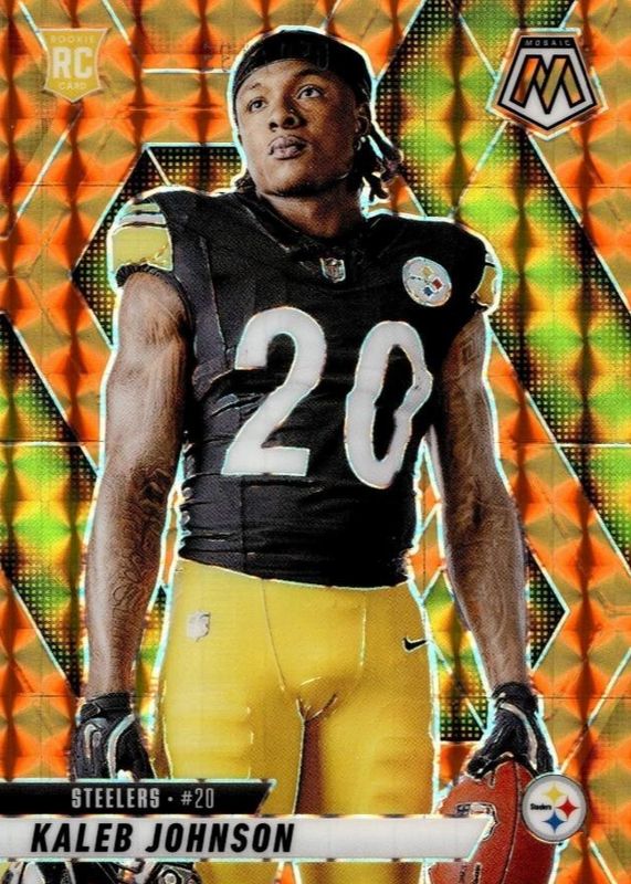 Best Prices Available For Sale of Kaleb Johnson 2025 Mosaic #289 Rookie Variation - Orange /199