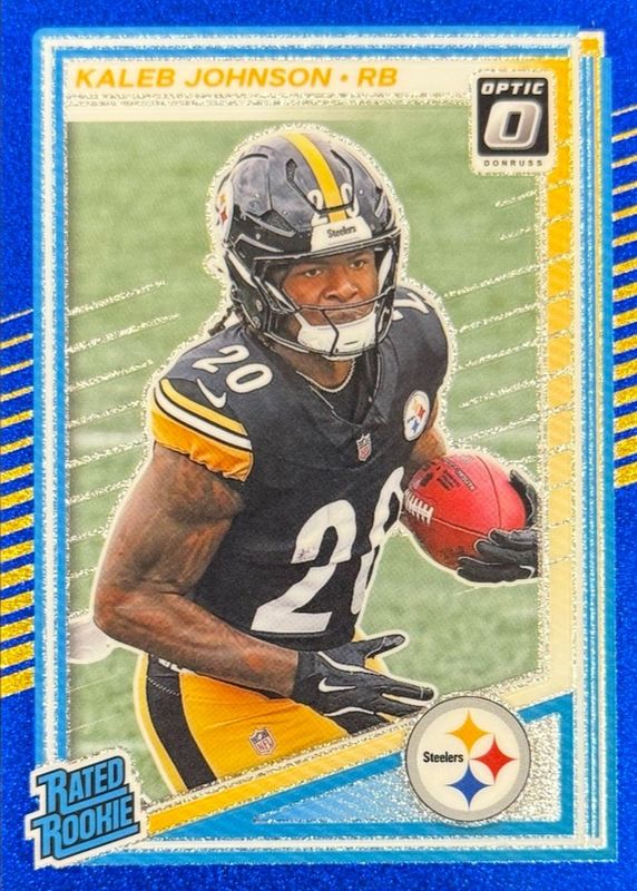 2025 Panini Donruss Optic Kaleb Johnson #232 Blue Glitter Rated Rookie Steelers