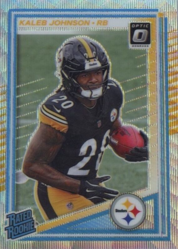 The Kaleb Johnson 2025 Optic #232 Wave /300 Rookie card in Raw condition has not changed in price in the last 30 days and was last sold for $4.99 .