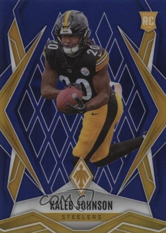 The Kaleb Johnson 2025 Phoenix #182 Blue /50 Rookie card in Raw condition has not changed in price in the last 30 days and was last sold for $3.99 .