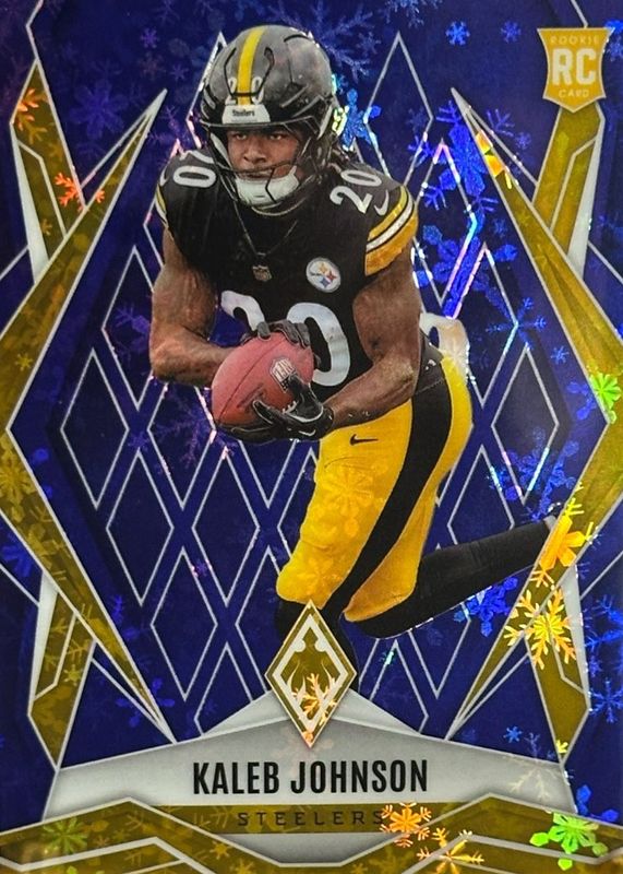 The Kaleb Johnson 2025 Phoenix #182 Blue Winter /199 Rookie card in Raw condition has not changed in price in the last 30 days and was last sold for $2.99 .