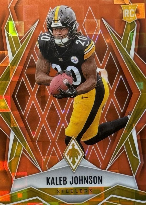 The Kaleb Johnson 2025 Phoenix #182 Orange Pandora /189 Rookie card in Raw condition has moved up $4.20 (+233%) in the last 30 days and was last sold for $6.00 .