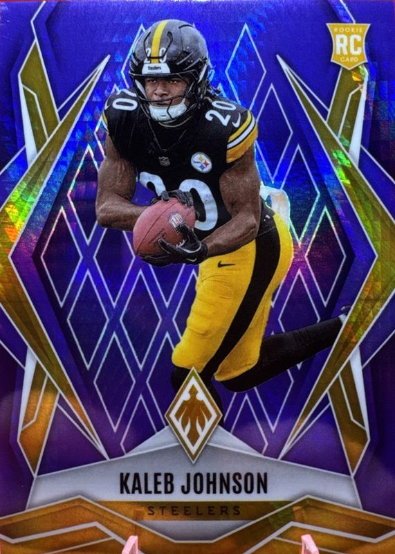 The Kaleb Johnson 2025 Phoenix #182 Purple Hyper /249 Rookie card in Raw condition has not changed in price in the last 30 days and was last sold for $1.50 .
