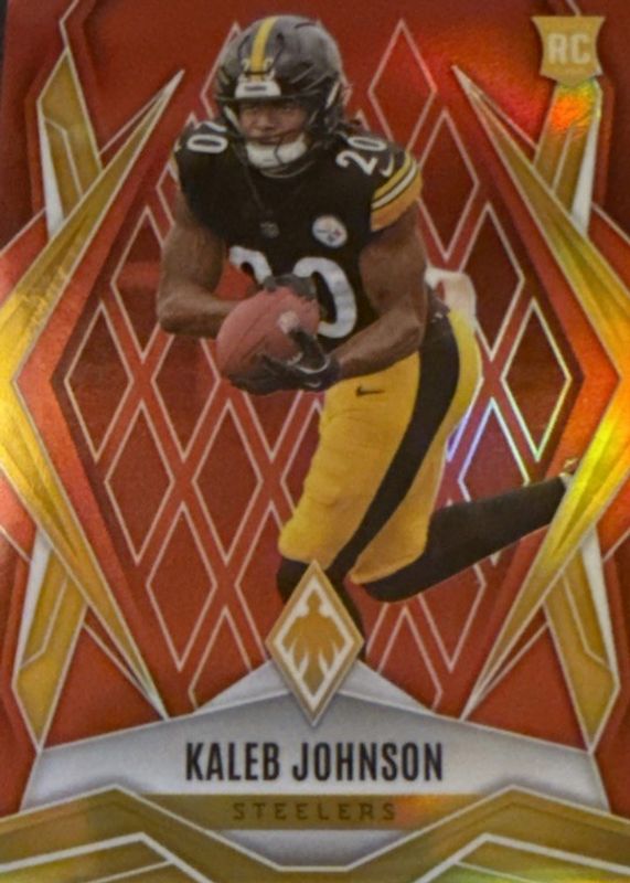 The Kaleb Johnson 2025 Phoenix #182 Red /99 Rookie card in Raw condition has not changed in price in the last 30 days and was last sold for $2.24 .
