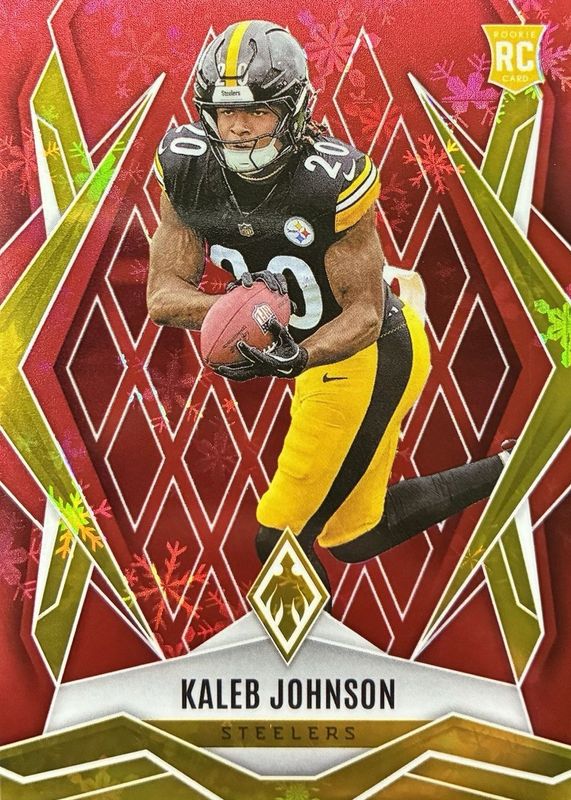 The Kaleb Johnson 2025 Phoenix #182 Red Winter /399 Rookie card in Raw condition has not changed in price in the last 30 days and was last sold for $0.99 .