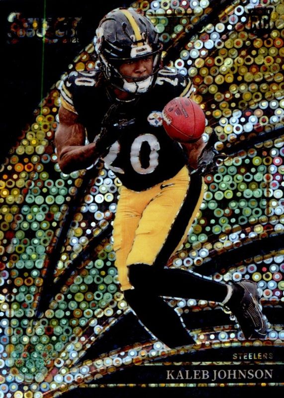 This card is 1 of 176 Kaleb Johnson's card variations in the 2025 Select set being tracked by Sports Card Investor, including Club Level, Concourse, Field Level, Club Level Black & Blue Shock, and Club Level Black & Gold Shock.