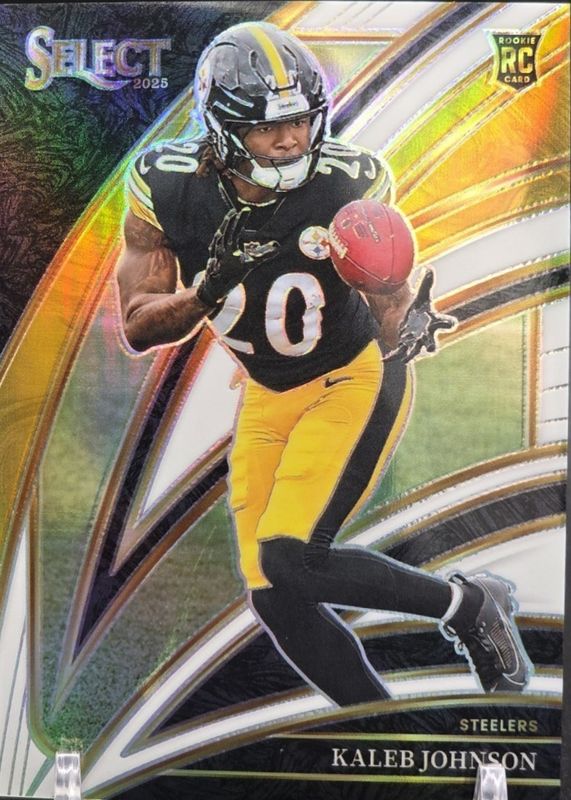This card is 1 of 176 Kaleb Johnson's card variations in the 2025 Select set being tracked by Sports Card Investor, including Club Level, Concourse, Field Level, Club Level Black & Blue Shock, and Club Level Black & Gold Shock.