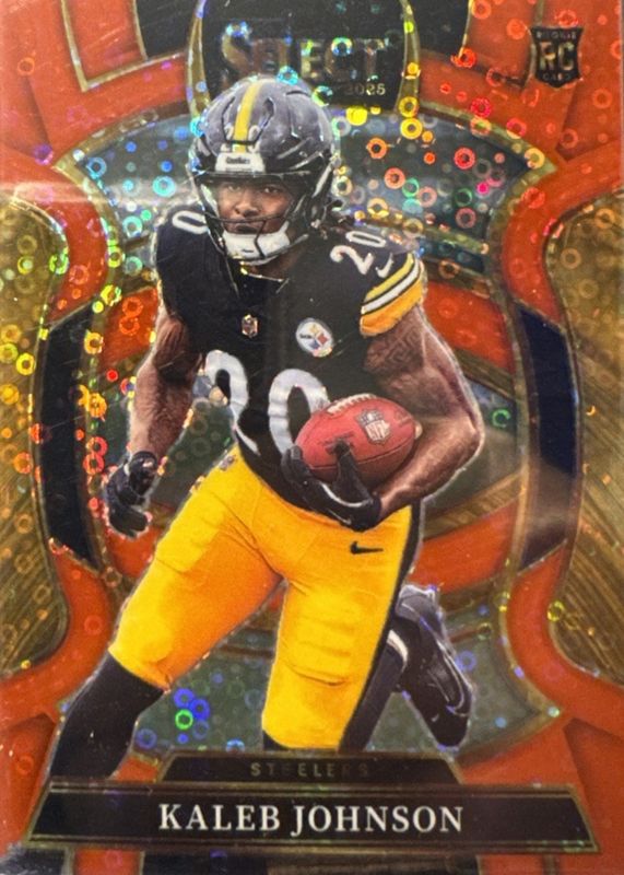 The Kaleb Johnson 2025 Select #52 Concourse Red Disco /49 Rookie card in Raw condition has not changed in price in the last 30 days and was last sold for $0.99 .