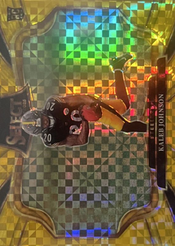 The Kaleb Johnson 2025 Select #452 Field Level Gold /10 Rookie card in Raw condition has not changed in price in the last 30 days and was last sold for $54.00 .
