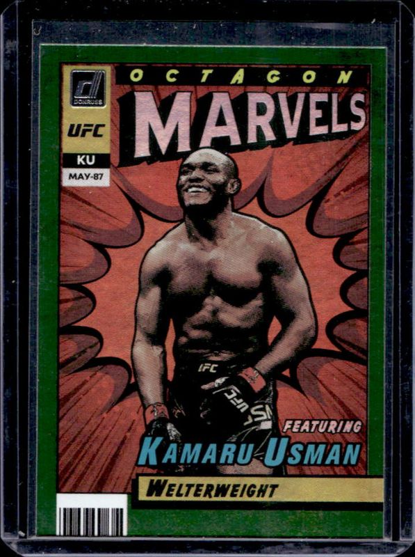 Kamaru Usman 2022 Donruss UFC #12 Octagon Marvels Green Flood RAW
