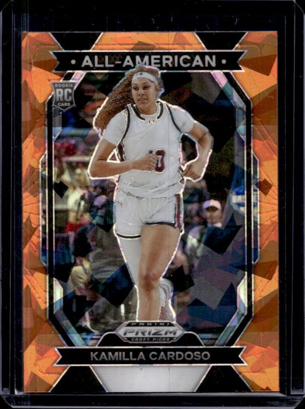 The Kamilla Cardoso 2024 Prizm Draft Picks #3 All-American - Orange Ice Rookie card is 1 of 151 Kamilla Cardoso's card variations in the 2024 Prizm Draft Picks set being tracked by Sports Card Investor, including #59 Base, #59b Base, #59 Variation, #59 Green, and #59b Green.