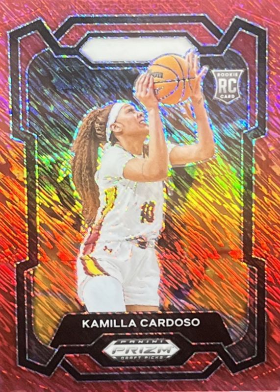 The Kamilla Cardoso 2024 Prizm Draft Picks #59 Red Shimmer /9 Rookie card in Raw condition has not changed in price in the last 30 days and was last sold for $13.00 .