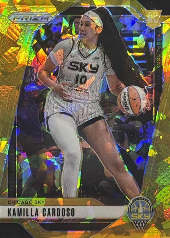 The Kamilla Cardoso 2024 Prizm WNBA #93 Gold Ice /10 Rookie card in Raw condition has not changed in price in the last 30 days and was last sold for $81.00 .