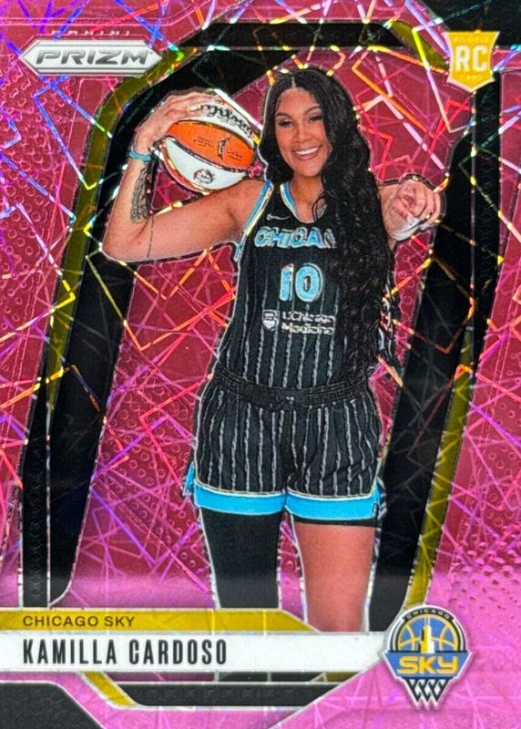 The Kamilla Cardoso 2024 Prizm WNBA #149 Rookie Variation - Pink Velocity /79 card in Raw condition has not changed in price in the last 30 days and was last sold for $31.49 .
