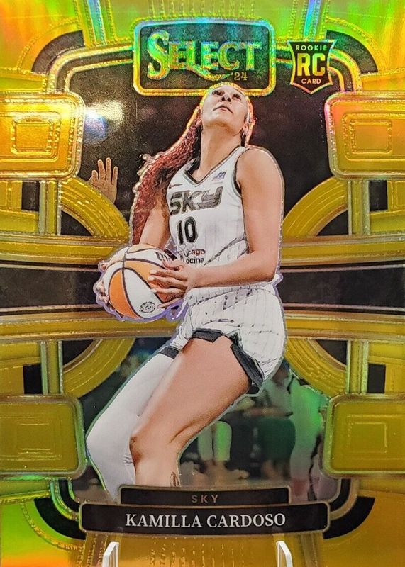 The Kamilla Cardoso 2024 Select WNBA #33 Concourse Gold /10 Rookie card in Raw condition has not changed in price in the last 30 days and was last sold for $93.00 .