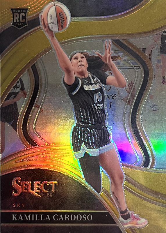 The Kamilla Cardoso 2024 Select WNBA #207 Courtside Gold /10 Rookie card in Raw condition has not changed in price in the last 30 days and was last sold for $139.99 .