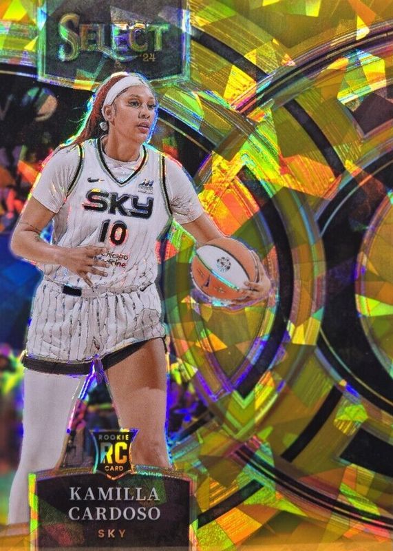 The Kamilla Cardoso 2024 Select WNBA #195 Premier Level Gold Ice /10 Rookie card in Raw condition has not changed in price in the last 30 days and was last sold for $65.00 .