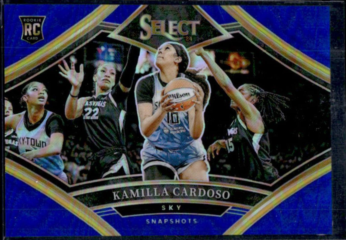 The Kamilla Cardoso 2024 Select WNBA #20 Snapshots Blue /49 Rookie card is 1 of 218 Kamilla Cardoso's card variations in the 2024 Select WNBA set being tracked by Sports Card Investor, including #33 Concourse, #207 Courtside, #195 Premier Level, #195 Base, and #207 Base.