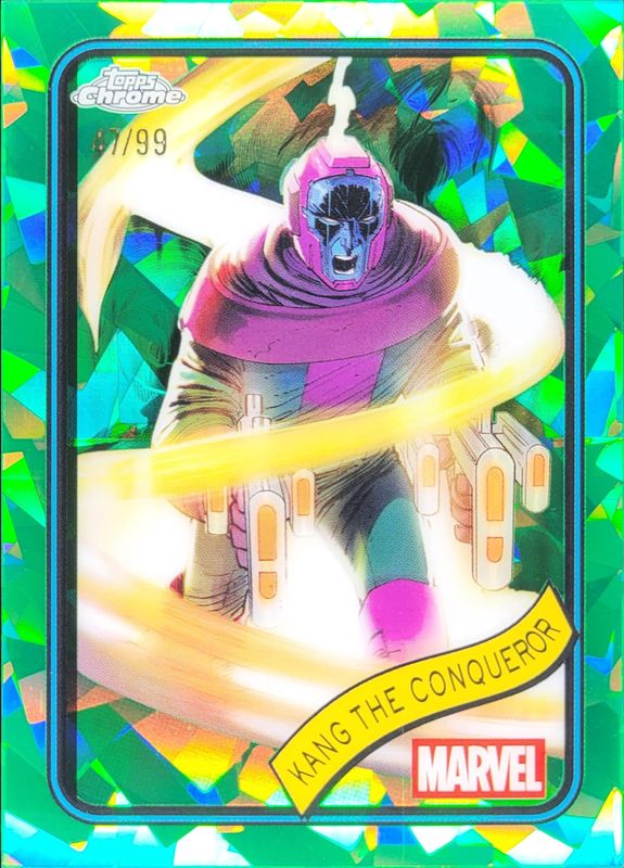 The Kang 2025 Topps Chrome Sapphire Edition #181 Green Refractor /99 card is 1 of 9 Kang's card variations in the 2025 Topps Chrome Sapphire Edition set being tracked by Sports Card Investor, including Base, Aqua Refractor /75, Gold Refractor /50, Orange Refractor /25, and Purple Refractor /15.