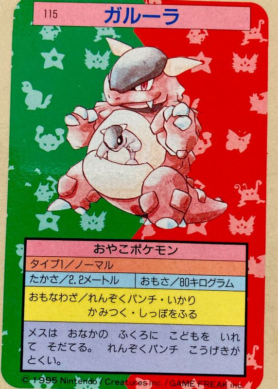 This card is 1 of 2 Kangaskhan's card variations in the 1997 Japanese Topsun set being tracked by Sports Card Investor, including Green Back (2nd Edition).