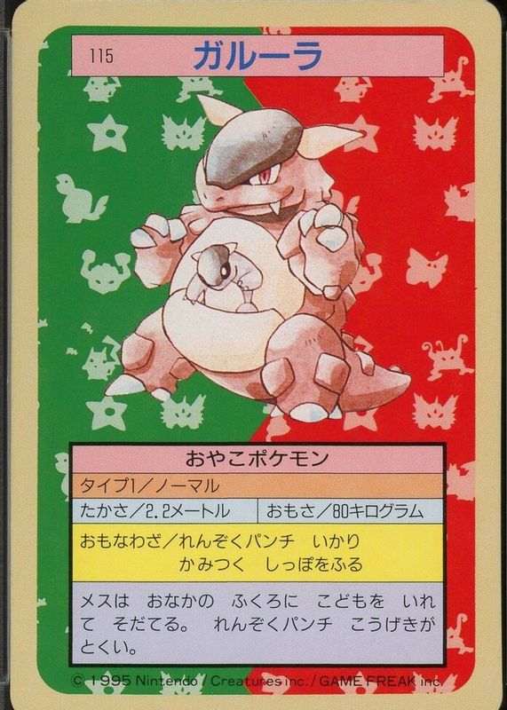 This card is 1 of 2 Kangaskhan's card variations in the 1997 Japanese Topsun set being tracked by Sports Card Investor, including Blue Back (1st Edition).